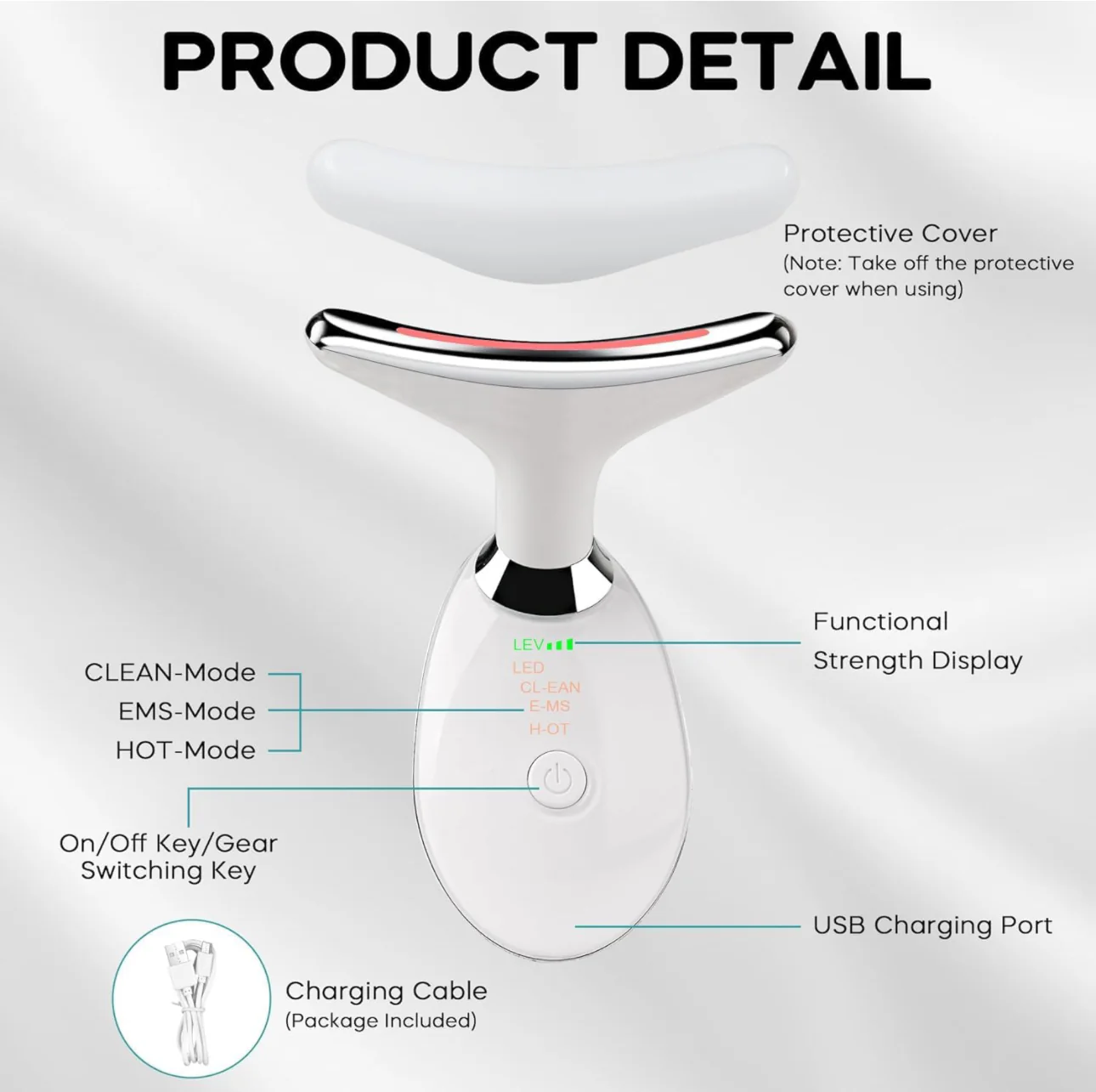 • Included Accessories: 1 massager, 1 charging cable, 1 cleaning cloth, box packaging